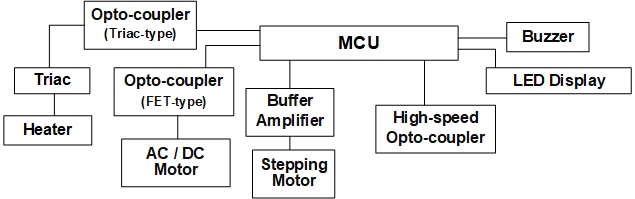 在全球气候变暖的当下,空调在白色家电中占有举足轻重的地位。典型的空调系统由室外机、室内机和电源单元组成。对于电源单元,MYBALL迈博微电 具有高隔离电压光电耦合器,用于隔离 PWM 和 PFC。对于室内机,MCU 控制与光电耦合器结合的风扇模块、与光电三端双向可控硅开关和外围设备结合的加热器开关。主隔离 MCU 和相关外围设备,确保电路的可靠性。对于室外机,使用 MCU 控制风扇和压缩机的电机系统。电机控制系统是各种家用电器的组成部分。每一个单独模块都取决于安全和环境保护要求、性能要求,当然还有制造成本。因此,在设计家用电器时,需要加强对单片机和外围设备对应用电路的隔离,以确保电路的低噪声。